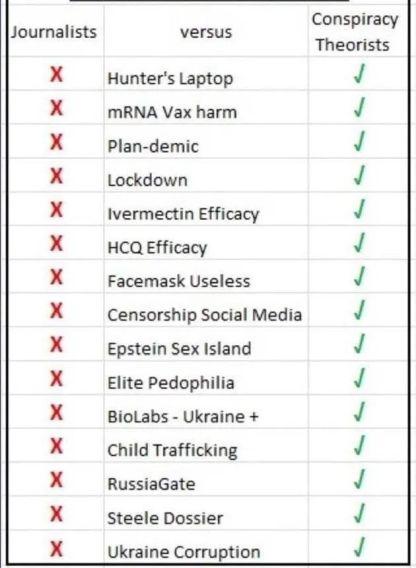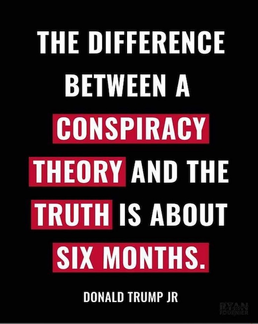 “Conspiracy theories” frequently prove to be partially or wholly accurate in the long run. People who dissent from popular “narratives” tend to be months—or even years—ahead of the corporate news talking heads when it comes to “breaking news.”
