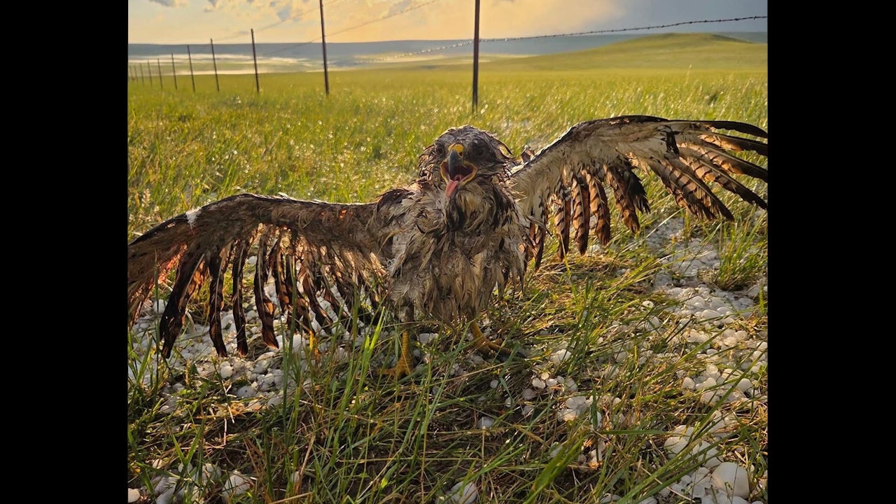 After 30 minutes of heavy rain and hail, the skies cleared and Wichman ventured back out to his property. That's when he came across a shocking sight: a battered hawk that had been caught up in the furious hailstorm.