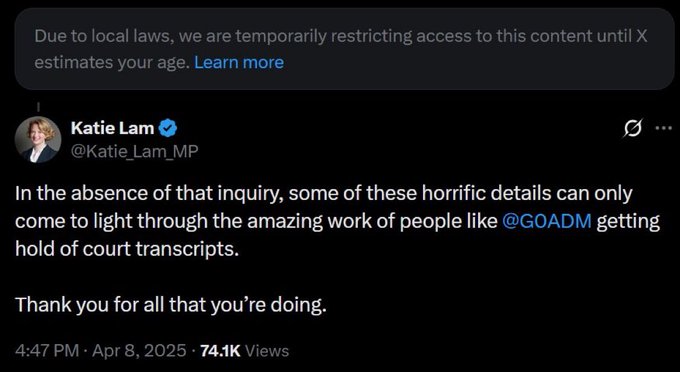 The Online Safety Act has now restricted some users from viewing a speech in parliament about Pakistani grooming gangs.