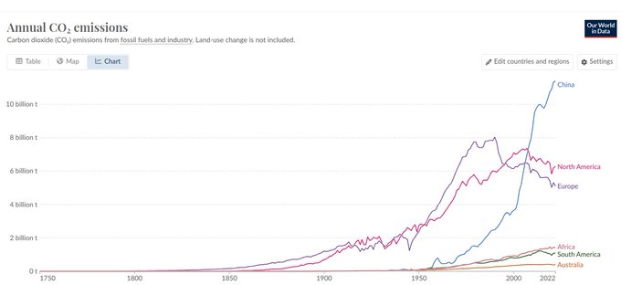 China's CO2 emissions are skyrocketing and are about the same as North America and Europe combined