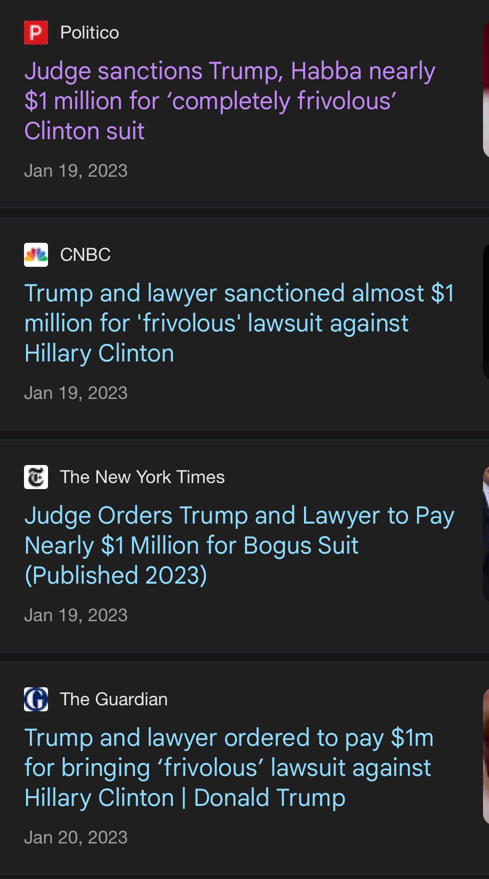 “The conspiracy-minded racketeering suit was filed with hyperbole and exaggerations, and made claims easily shown to be false. In the ruling on Thursday, Judge Middlebrooks broke down how the suit’s claims — including that Mrs. Clinton and Mr. Comey had conspired to take down Mr. Trump — were “implausible” and “categorically absurd.” -NYTimes
