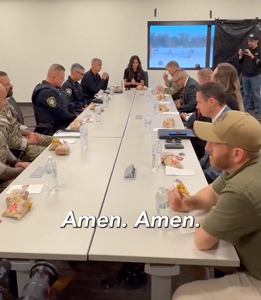 Noem and the others in these photos are battling the forces of Satan. Asking God for help is a good thing.