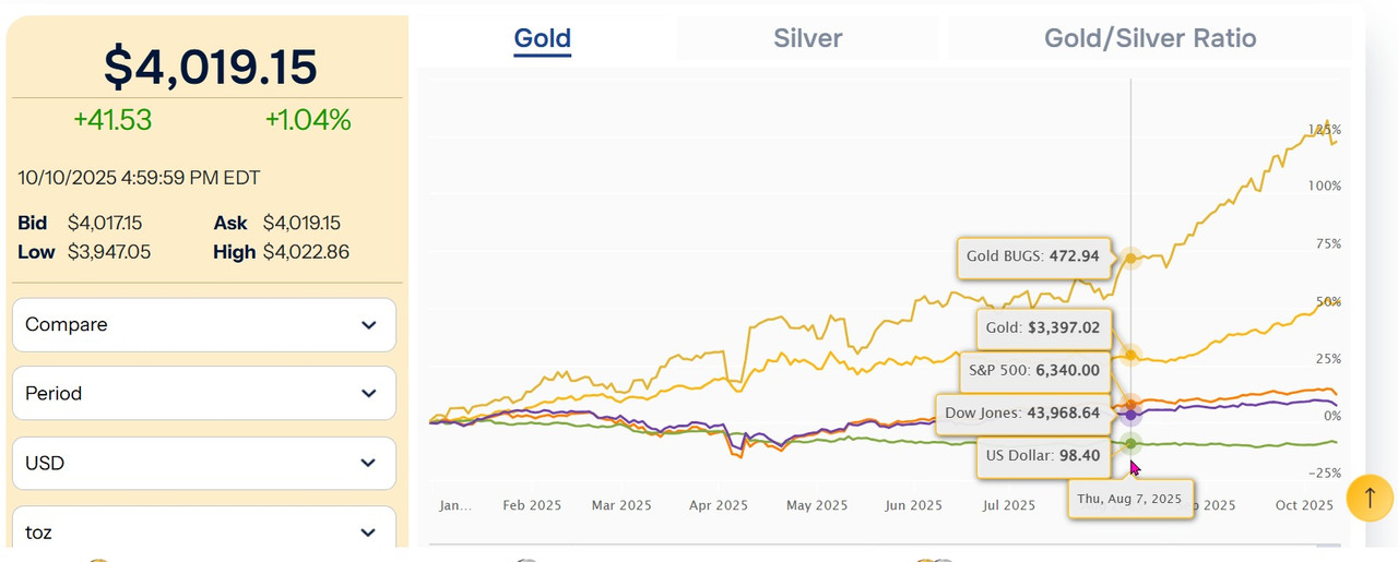 My guess, Silver just topped the all time high of $50 USD and Gold right at $4,000 USD/ oz.