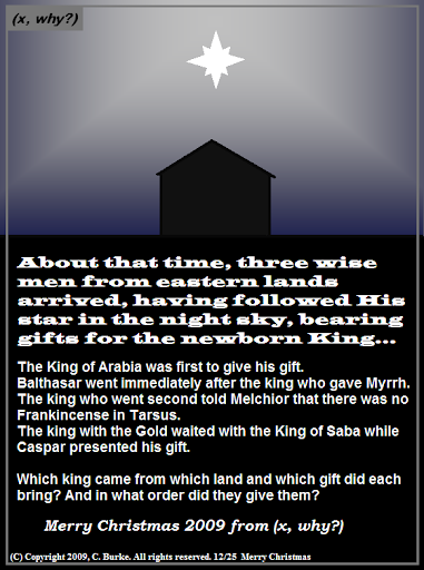 Glad you enjoyed it. My former Math coach at school found it clever and wanted to figure it out. She’s Orthodox Jewish, btw. The only guy on my blog that answered it said that he couldn’t figure it out, so he just Googled it (which gave everything except the random order I used).