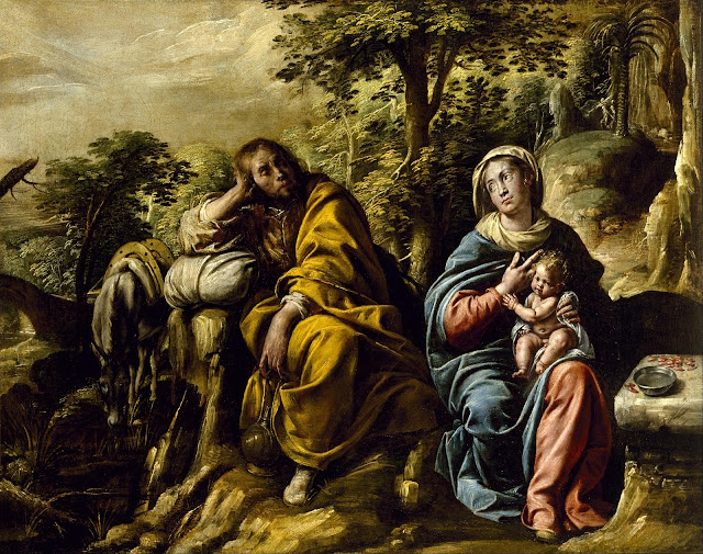 This is a fantastic collection of images! Speaking mainly of the paintings, I continue to be struck by the wide range of depictions that contain only the artists’ limited frame of reference to his own time, and the few that strive for historical accuracy, since the visual history was so much harder to access or be known in the earlier days of Christendom. Whether due to youth or homosexuality, many of these artists had no clue about the bodily proportions of an infant; and #41 shows a three-year old Jesus walking between his parents! (by the way, that painter is Giovanni Francesco Romanelli).