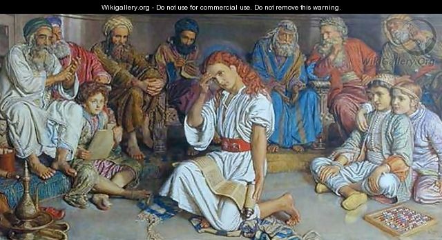 Hunt's #41 is painting Hunt's opinion (imo) that Jesus (hand to brow) is having a little difficulty with the doctors' obtuseness.