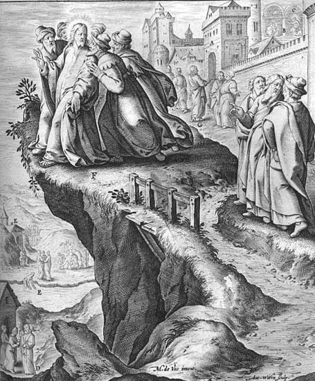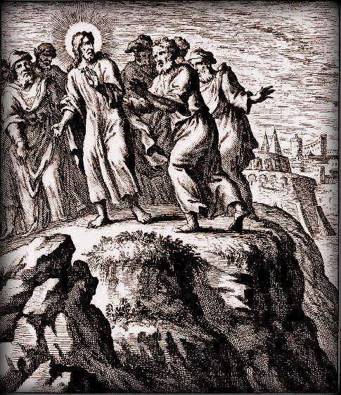 All the people in the synagogue were furious when they heard this. They got up, drove him out of the town, and took him to the brow of the hill on which the town was built, in order to throw him off the cliff. But he walked right through the crowd and went on his way.