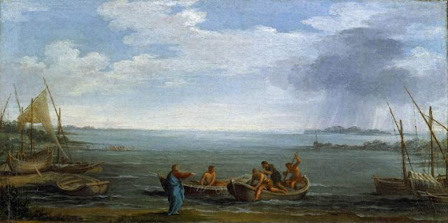 So many to like! #8, Caravaggio with an unusual young and beardless Jesus listening to Peter. #7 & #9, Ghirlandaio. One of the frescoes, part of the cycle of Christ life, of the walls of the Sistine Chapel. Ghirlandaio was very skilled in portraits but also in depiciting landscapes. The Sea of Galilee is surrounded by hills and mountains, snaking its way like a river. The group of people on the right represent members of the most influential families of Florence. At their left is another scene with Christ calling on James and John who are mending their nets with Zebedee.