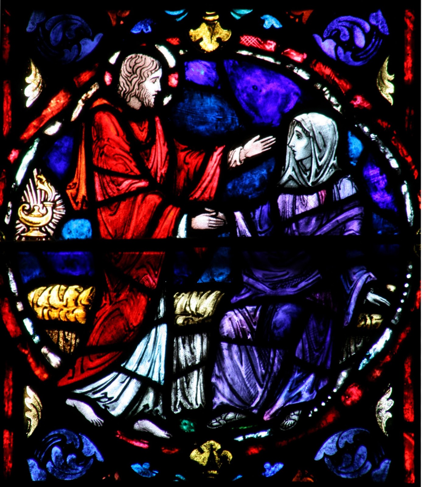 To read JOHN 4 in full To hear MAX McLEAN reading it To hear a DRAMATIZATION of it To see an ANIMATION of Matthew, Mark, Luke, or John Harmony of the Gospels