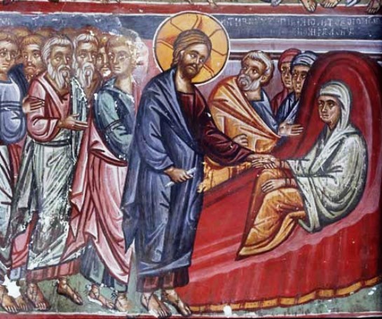 4:38-44Jesus left the synagogue and went to the home of Simon. Now Simon’s mother-in-law was suffering from a high fever, and they asked Jesus to help her. So he bent over her and rebuked the fever, and it left her. She got up at once and began to wait on them.