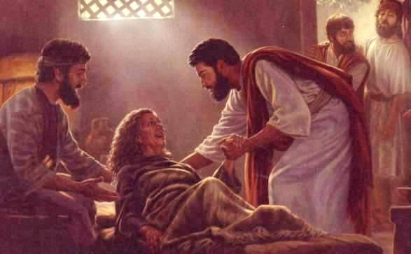 When Jesus came into Peter’s house, he saw Peter’s mother-in-law lying in bed with a fever. He touched her hand and the fever left her, and she got up and began to wait on him.When evening came, many who were demon-possessed were brought to him, and he drove out the spirits with a word and healed all the sick. This was to fulfill what was spoken through the prophet Isaiah: