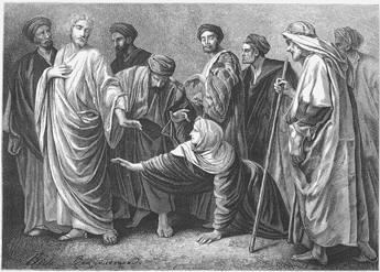 9:20-22Just then a woman who had been subject to bleeding for twelve years came up behind him and touched the edge of his cloak. She said to herself, “If I only touch his cloak, I will be healed.”