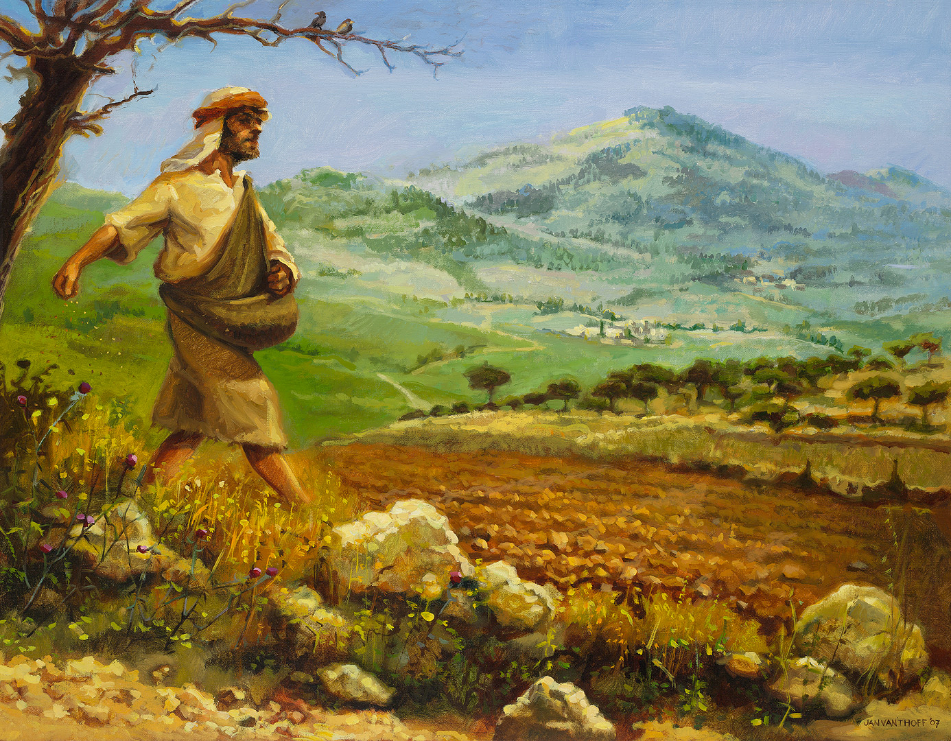 Ch. 13:1-23 That same day Jesus went out of the house and sat by the lake. Such large crowds gathered around him that he got into a boat and sat in it, while all the people stood on the shore. Then he told them many things in parables, saying: “A farmer went out to sow his seed. As he was scattering the seed, some fell along the path, and the birds came and ate it up. Some fell on rocky places, where it did not have much soil. It sprang up quickly, because the soil was shallow. But when the sun came up, the plants were scorched, and they withered because they had no root. Other seed fell among thorns, which grew up and choked the plants. Still other seed fell on good soil, where it produced a crop—a hundred, sixty or thirty times what was sown. Whoever has ears, let them hear.” The disciples came to him and asked, “Why do you speak to the people in parables?” He replied, “Because the knowledge of the secrets of the kingdom of heaven has been given to you, but not to them. Whoever has will be given more, and they will have an abundance. Whoever does not have, even what they have will be taken from them. This is why I speak to them in parables: “Though seeing, they do not see; though hearing, they do not hear or understand. In them is fulfilled the prophecy of Isaiah: “‘You will be ever hearing but never understanding; But blessed are your eyes because they see, and your ears because they hear. For truly I tell you, many prophets and righteous people longed to see what you see but did not see it, and to hear what you hear but did not hear it. “Listen then to what the parable of the sower means: When anyone hears the message about the kingdom and does not understand it, the evil one comes and snatches away what was sown in their heart. This is the seed sown along the path. The seed falling on rocky ground refers to someone who hears the word and at once receives it with joy. But since they have no root, they last only a short time. When trouble or persecution comes because of the word, they quickly fall away. The seed falling among the thorns refers to someone who hears the word, but the worries of this life and the deceitfulness of wealth choke the word, making it unfruitful. But the seed falling on good soil refers to someone who hears the word and understands it. This is the one who produces a crop, yielding a hundred, sixty or thirty times what was sown.” | Ch. 4:1-20 Again Jesus began to teach by the lake. The crowd that gathered around him was so large that he got into a boat and sat in it out on the lake, while all the people were along the shore at the water’s edge. He taught them many things by parables, and in his teaching said: “Listen! A farmer went out to sow his seed. As he was scattering the seed, some fell along the path, and the birds came and ate it up. Some fell on rocky places, where it did not have much soil. It sprang up quickly, because the soil was shallow. But when the sun came up, the plants were scorched, and they withered because they had no root. Other seed fell among thorns, which grew up and choked the plants, so that they did not bear grain. Still other seed fell on good soil. It came up, grew and produced a crop, some multiplying thirty, some sixty, some a hundred times.” Then Jesus said, “Whoever has ears to hear, let them hear.” When he was alone, the Twelve and the others around him asked him about the parables. He told them, “The secret of the kingdom of God has been given to you. But to those on the outside everything is said in parables so that, “‘they may be ever seeing but never perceiving, Then Jesus said to them, “Don’t you understand this parable? How then will you understand any parable? The farmer sows the word. Some people are like seed along the path, where the word is sown. As soon as they hear it, Satan comes and takes away the word that was sown in them. Others, like seed sown on rocky places, hear the word and at once receive it with joy. But since they have no root, they last only a short time. When trouble or persecution comes because of the word, they quickly fall away. Still others, like seed sown among thorns, hear the word; but the worries of this life, the deceitfulness of wealth and the desires for other things come in and choke the word, making it unfruitful. Others, like seed sown on good soil, hear the word, accept it, and produce a crop—some thirty, some sixty, some a hundred times what was sown.” | Ch. 8:1-15 After this, Jesus traveled about from one town and village to another, proclaiming the good news of the kingdom of God. The Twelve were with him, and also some women who had been cured of evil spirits and diseases: Mary (called Magdalene) from whom seven demons had come out; Joanna the wife of Chuza, the manager of Herod’s household; Susanna; and many others. These women were helping to support them out of their own means. While a large crowd was gathering and people were coming to Jesus from town after town, he told this parable: “A farmer went out to sow his seed. As he was scattering the seed, some fell along the path; it was trampled on, and the birds ate it up. Some fell on rocky ground, and when it came up, the plants withered because they had no moisture. Other seed fell among thorns, which grew up with it and choked the plants. Still other seed fell on good soil. It came up and yielded a crop, a hundred times more than was sown.” When he said this, he called out, “Whoever has ears to hear, let them hear.” His disciples asked him what this parable meant. He said, “The knowledge of the secrets of the kingdom of God has been given to you, but to others I speak in parables, so that, “‘though seeing, they may not see; “This is the meaning of the parable: The seed is the word of God. Those along the path are the ones who hear, and then the devil comes and takes away the word from their hearts, so that they may not believe and be saved. Those on the rocky gr