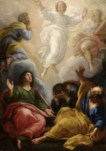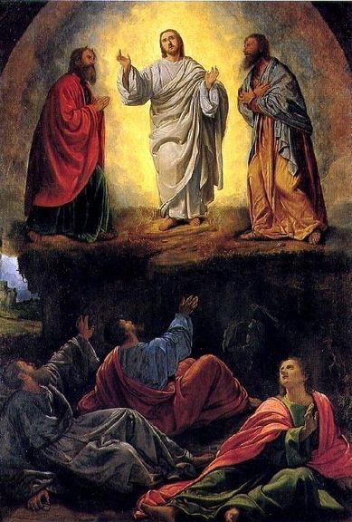 I imagine that painting is quite magnificent in person. But as concerns the Transfiguration story, it didn't cut it for me, probably because of the feminized posture of the Christ figure, and the floating Moses and Elijah not visually separated enough from their backgrounds.