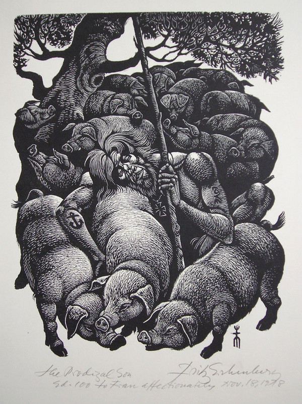 Seeing the images of the son tending swine brings home how shocking this development must have been to the Pharisees who were strictly kosher and who strained their drinks to prevent accidentally swallowing a gnat (another unclean animal).