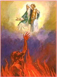 "The time came when the beggar died and the angels carried him to Abraham's side. The rich man also died and was buried. In hell, where he was in torment, he looked up and saw Abraham far away, with Lazarus by his side. So he called to him, 'Father Abraham, have pity on me and send Lazarus to dip the tip of his finger in water and cool my tongue, because I am in agony in this fire.'