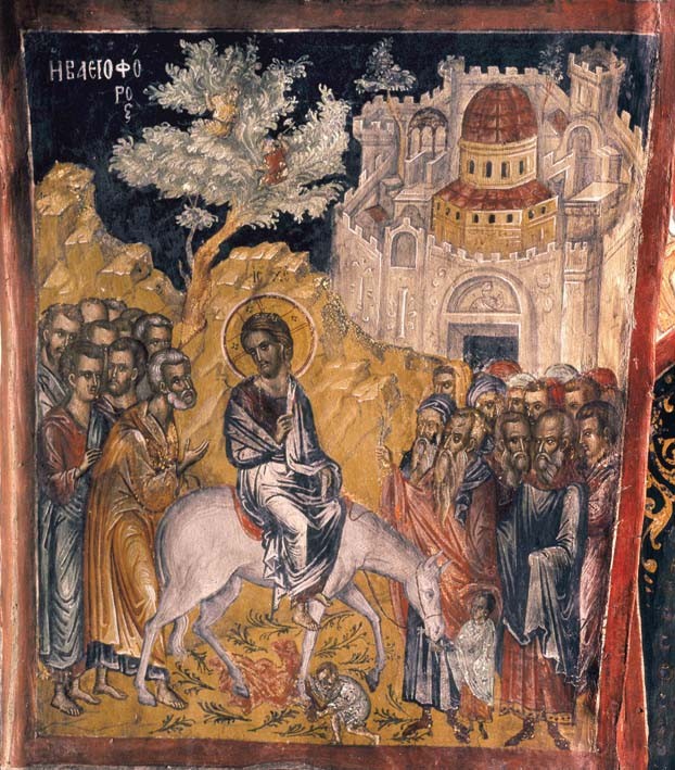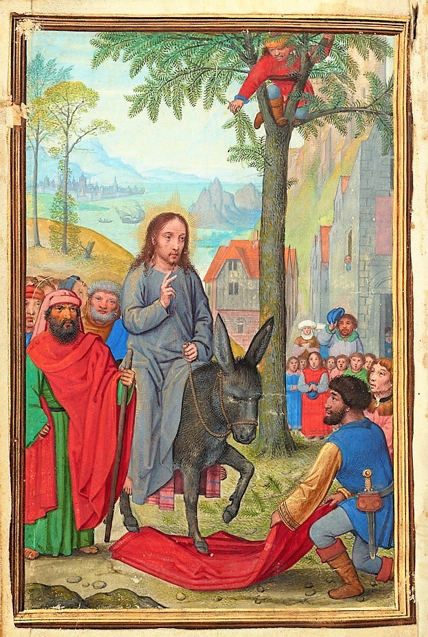 21:1-11 As they approached Jerusalem and came to Bethphage on the Mount of Olives, Jesus sent two disciples, saying to them, "Go to the village ahead of you, and at once you will find a donkey tied there, with her colt by her. Untie them and bring them to me. If anyone says anything to you, tell him that the Lord needs them, and he will send them right away." This took place to fulfill what was spoken through the prophet: "Say to the Daughter of Zion, The disciples went and did as Jesus had instructed them. They brought the donkey and the colt, placed their cloaks on them, and Jesus sat on them. A very large crowd spread their cloaks on the road, while others cut branches from the trees and spread them on the road. The crowds that went ahead of him and those that followed shouted, "Hosanna to the Son of David!" When Jesus entered Jerusalem, the whole city was stirred and asked, "Who is this?" The crowds answered, "This is Jesus, the prophet from Nazareth in Galilee." | 11:1-11 As they approached Jerusalem and came to Bethphage and Bethany at the Mount of Olives, Jesus sent two of his disciples, saying to them, "Go to the village ahead of you, and just as you enter it, you will find a colt tied there, which no one has ever ridden. Untie it and bring it here. If anyone asks you, 'Why are you doing this?' tell him, 'The Lord needs it and will send it back here shortly.' " They went and found a colt outside in the street, tied at a doorway. As they untied it, some people standing there asked, "What are you doing, untying that colt?" They answered as Jesus had told them to, and the people let them go. When they brought the colt to Jesus and threw their cloaks over it, he sat on it. Many people spread their cloaks on the road, while others spread branches they had cut in the fields. Those who went ahead and those who followed shouted, "Hosanna!" Jesus entered Jerusalem and went to the temple. He looked around at everything, but since it was already late, he went out to Bethany with the Twelve. | 19:28-44 After Jesus had said this, he went on ahead, going up to Jerusalem. As he approached Bethphage and Bethany at the hill called the Mount of Olives, he sent two of his disciples, saying to them, "Go to the village ahead of you, and as you enter it, you will find a colt tied there, which no one has ever ridden. Untie it and bring it here. If anyone asks you, 'Why are you untying it?' tell him, 'The Lord needs it.' " Those who were sent ahead went and found it just as he had told them. As they were untying the colt, its owners asked them, "Why are you untying the colt?" They replied, "The Lord needs it." They brought it to Jesus, threw their cloaks on the colt and put Jesus on it. As he went along, people spread their cloaks on the road. When he came near the place where the road goes down the Mount of Olives, the whole crowd of disciples began joyfully to praise God in loud voices for all the miracles they had seen: "Blessed is the king who comes in the name of the Lord!" Some of the Pharisees in the crowd said to Jesus, "Teacher, rebuke your disciples!" "I tell you," he replied, "if they keep quiet, the stones will cry out." As he approached Jerusalem and saw the city, he wept over it and said, "If you, even you, had only known on this day what would bring you peace--but now it is hidden from your eyes. The days will come upon you when your enemies will build an embankment against you and encircle you and hem you in on every side. They will dash you to the ground, you and the children within your walls. They will not leave one stone on another, because you did not recognize the time of God's coming to you." | 12:12-19 The next day the great crowd that had come for the Feast heard that Jesus was on his way to Jerusalem. They took palm branches and went out to meet him, shouting, "Hosanna! " "Blessed is he who comes in the name of the Lord!" "Blessed is the King of Israel!" Jesus found a young donkey and sat upon it, as it is written, "Do not be afraid, O Daughter of Zion; see, your king is coming, seated on a donkey's colt." At first his disciples did not understand all this. Only after Jesus was glorified did they realize that these things had been written about him and that they had done these things to him. Now the crowd that was with him when he called Lazarus from the tomb and raised him from the dead continued to spread the word. Many people, because they had heard that he had given this miraculous sign, went out to meet him. So the Pharisees said to one another, "See, this is getting us nowhere. Look how the whole world has gone after him!" |