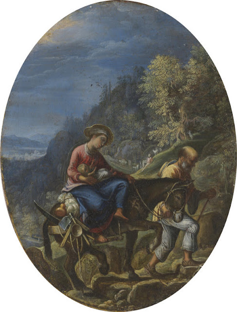 So many beautiful paintings. My preference are #9 by Crespi; #13 Rembrandt; #31 Gentileschi; #40 Varallo; #42 Patinir with a splendid landscape and #43 by Merson. Genial to place Mary and baby Jesus sleeping within the paws of the sphinx.