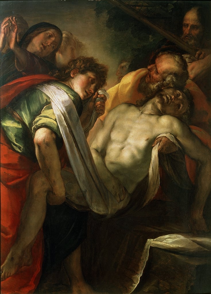 10 TITIAN "The Entombment of Christ" 11 EUGÈNE DELACROIX "The Entombment of Christ" 12 MICHELANGELO "The Entombment" ![]() 13 TINTORETTO "Christ Carried to the Tomb" ![]() 14 CARL BLOCH "Burial of Jesus" ![]() 15 VITTORE CARPACCIO "Preparation of Christ's Tomb" 16 GUSTAVE DORÉ "The Burial of Christ" ![]() 17 EUGENE DELACROIX "Christ Carried Down to the Tomb" ![]() 18 CARAVAGGIO "The Entombment of Christ" ![]() 19 TITIAN "The Burial of Christ" ![]() 20 TITIAN "The Placing of Christ in the Sepulchre" ![]() 21 SIMON VOUET "The Entombment" ![]() 22 PETER PAUL RUBENS "The Entombment" ![]() 23 PETER PAUL RUBENS "Entombment" ![]() 24 GIOVANNI BATTISTA TIEPOLO "Deposition" 25 ANNIBALE CARRACCI "Entombment of Christ" ![]() 26 LORENZO LOTTO "The Deposition" 27 MATTHIAS GRÜNEWALD "Lamentation and Entombment of Christ" 28 REMBRANDT "The Entombment of Christ" ![]() 29 LUCA GIORDANO "Entombment" ![]() 30 GIACINTO BRANDI "Christ Entombed by Joseph of Arimathea" ![]() 31 WILLIAM BRASSEY HOLE "Joseph of Arimathea Laying the Body of Jesus in his Own Tomb" ![]() 32 GUERCINO "The Entombment" ![]() 33 FRANCISCO GOYA "The Burial of Christ" ![]() 34 GIANDOMENICO TIEPOLO "The Entombment of Christ" 35 PROSPERO FONTANA "Sepoltura di Gesù Cristo" ![]() 36 JULIAN and LEON, ANDRES DE FUENTE DEL SAZ "Entombment" 37 PEDRO SÁNCHEZ "The Entombment of Christ" ![]() 38 VILMOS ZSOLNAY "Burial of Jesus Christ" 39 TITIAN "Joseph of Arimathea, Nicodemus and the Virgin Mary take Christ in the tomb watched by Mary Magdalene and Saint John the Evangelist" 40 BALTASAR DE ECHAVE Y RIOJA "El Entierro de Cristo" ![]() 41 FRANCISZEK KRUDOWSKI "The Entombment of Christ" ![]() 42 GIULIO CESARE PROCACCINI "The Entombment of Christ" ![]() 43 BENVENUTO TISI "Entombment" ![]() 44 SISTO BADALOCCHIO "The Entombment of Christ" ![]() 45 GIAMBATTISTA FARINATI "The Entombment" ![]() 46 "The Entombment of Christ" 47 SIMON VOUET "The Entombment" ![]() 48 "Jesus is Laid in the Tomb" ![]() 49 "Burial of Jesus" ![]() 50 GIOVANNI DELLA ROBBIA "Sepoltura di Cristo" ![]() 51 LIGIER RICHIER "The Entombment and the Swoon of the Virgin" ![]() 52 Detail 53 PEDRO ROLDÁN "Burial of Christ" 54 "Sepoltura di Gesù" ![]() 55 "The Entombment of Christ" 56 HANS HOLBEIN the Younger "The Body of the Dead Christ in the Tomb" ![]() 57 GIUSEPPE SANMARTINO "Veiled Christ" ![]() 58 Detail 1 ![]() 59 Detail 2 60 Detail 3 ![]() 61 "The Shroud of Turin" 62 "Detail: positive left, digitally processed right" ![]() 63 EUGENE BURNARD "Holy Saturday" ![]() 64 Source ![]() 65 Source *For parallel account, see MATTHEW 27, MARK 15 and LUKE 23 Masthead Painting: “THE HAND OF GOD” by Yongsung Kim |