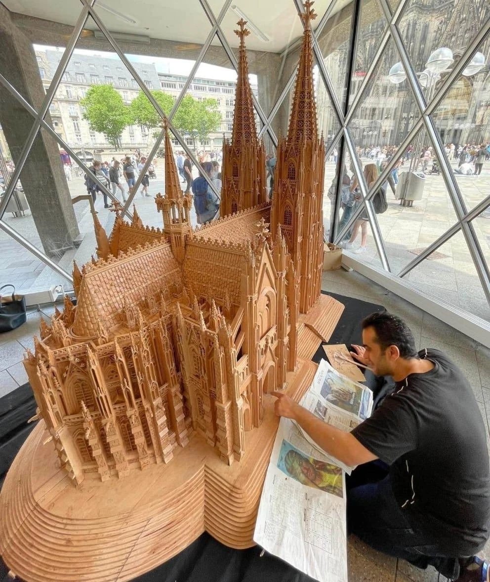 The Aleppo-born craftsman worked with hard beech wood and old Syrian tools in a small cellar in Cologne's Kalk district. Alhudr is a Muslim, but says he felt a strong connection with the Catholic cathedral. (Click link for photo or view in discussion)