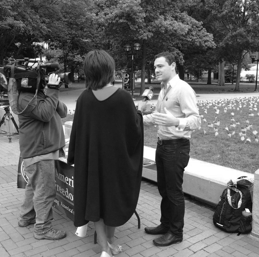 Caleb Slater, a conservative student and the president of the Ithaca College Republicans, recently attended YAF’s 39th Annual National Conservative Student Conference, where he received a baseball cap with the Young America’s Foundation logo and our slogan, “The Conservative Movement Starts Here,” printed on the back. Caleb chose to wear his YAF hat when he attended a vigil in Syracuse, New York, for the victims of last weekend’s violent clash in Charlottesville. “I wore my Young America’s Foundation hat to the rally as a symbol of peace,” Caleb explained. “I wore the hat to show that conservatives condemn the actions...