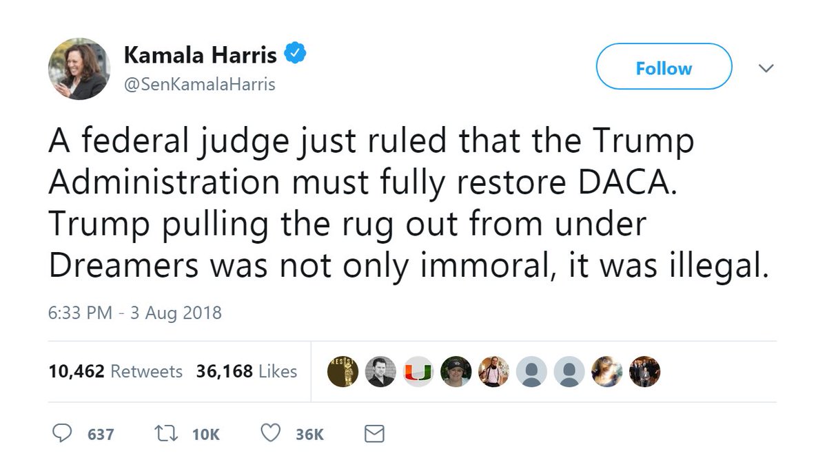 Kamala Harris?!?! I thought that idiot was supposed to have been a lawyer herself. Seems not to understand how government works.